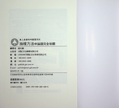 108年 高點/高上 抽樣方式 趙治勳老師 共12堂課+總複習 含PDF講義 函授DVD (4片DVD)(本課程上課以課本為主)